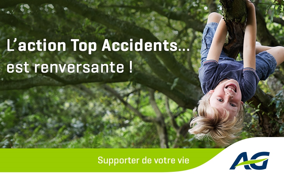 En souscrivant une assurance Top Habitation ou Auto chez AG, vous pouvez bénéficier gratuitement de la Top Accidents durant la première année de votre contrat !