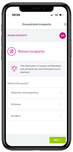 - Open the app and select ‘New claim’ > ‘Occupational incapacity’.