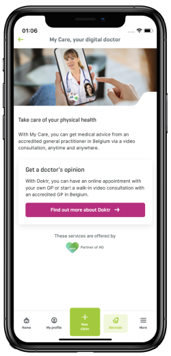 With My Care by AG, you get anytime, anywhere access to teleconsultations with your own GP (if s/he has a Doktr account) or with a doctor licensed to practice in Belgium, with no prior appointment necessary.