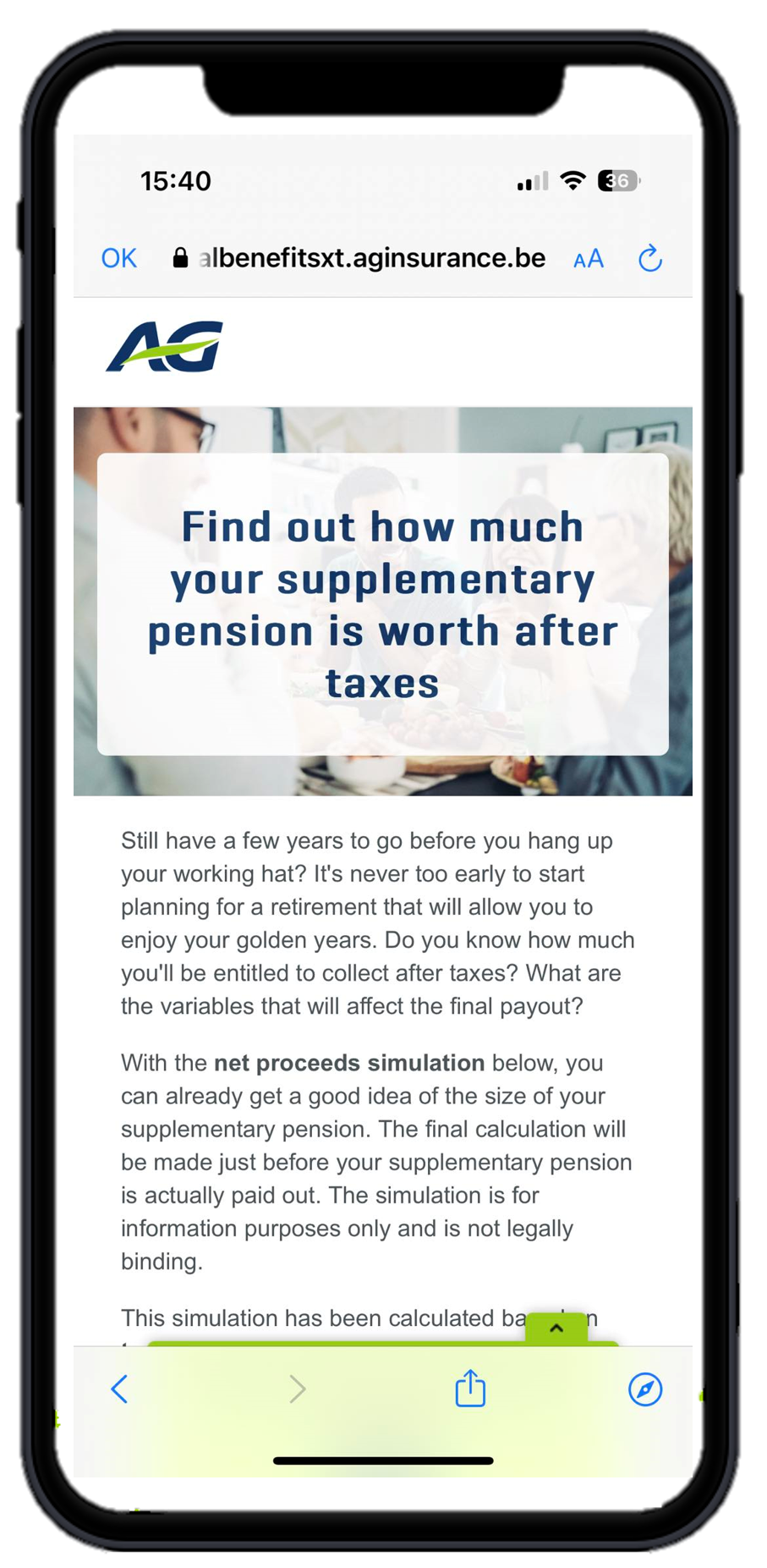 Click here if you prefer to receive your benefits statements in paper form. We do, however, encourage you to take a glimpse at MyAG Employee Benefits. This platform provides you with a clear overview of all your advantages. In addition, the information are written in a clearer and more comprehensible language than on your benefit statement.