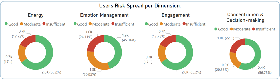As shown in the dashboard above, the greatest difficulties reported by employees who completed the assessment relate to managing emotions, closely followed by concentration problems.