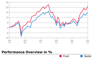 The return from the Rainbow Green fund (50% bonds and 50% shares) stands at 3.87% over 5 years (as at 30-06-2024).