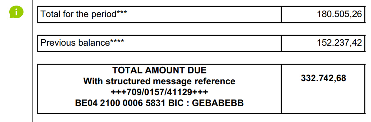 - Previous balance: this shows the total premiums for the outstanding due dates (of the past month(s)). Detail of these previous periods can then be found under the 4 starsĀ