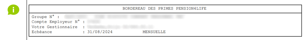 - Compte Employeur : numéro utilisé pour générer la demande de paiement. Il peut inclure plusieurs groupes de bordereaux.