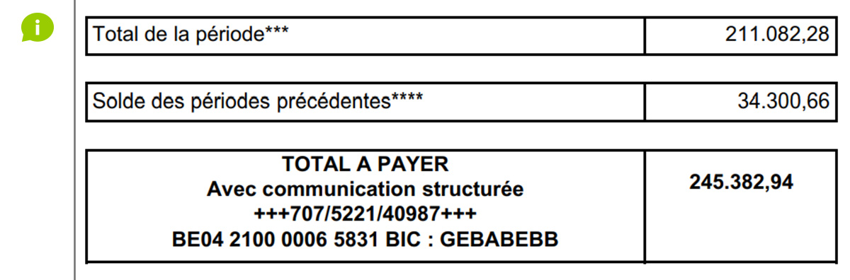 - Solde des périodes précédentes : reprend le total des primes des échéances en cours (du ou des mois précédent(s)) Le détail de ces périodes précédentes se trouve sous les 4 astérisques