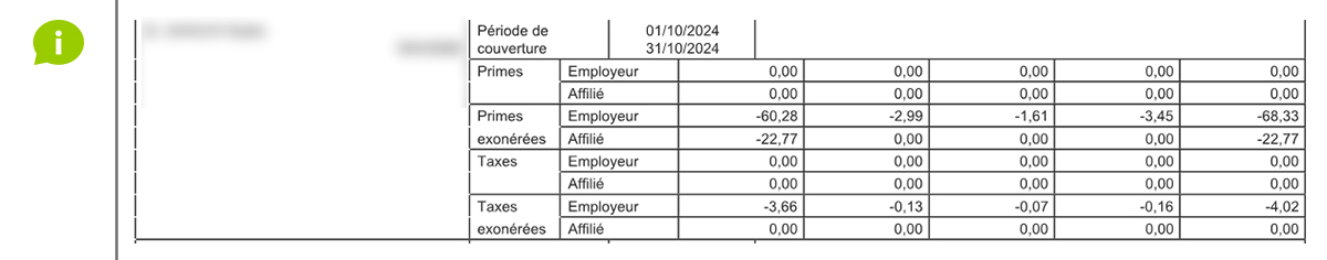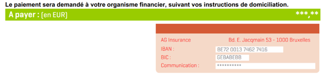 Si vous payez par domiciliation, votre bordereau de primes ressemble à ceci :