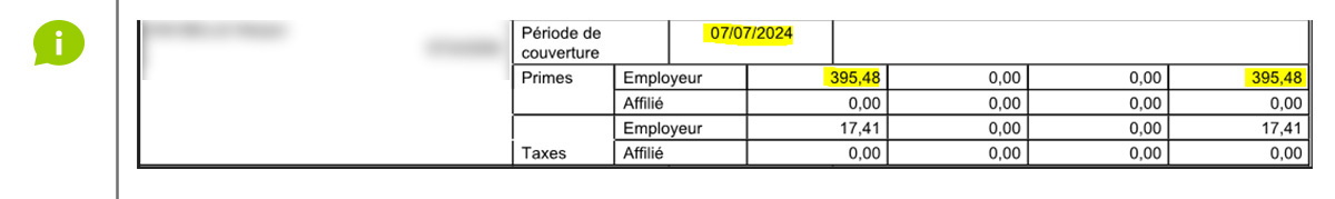 - Récapitulatif : le total des primes par couverture