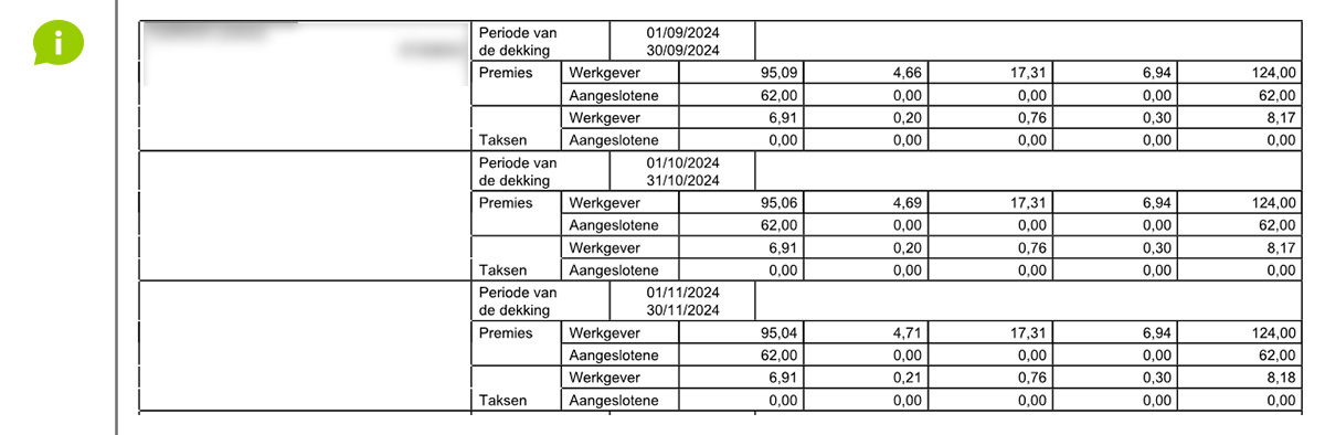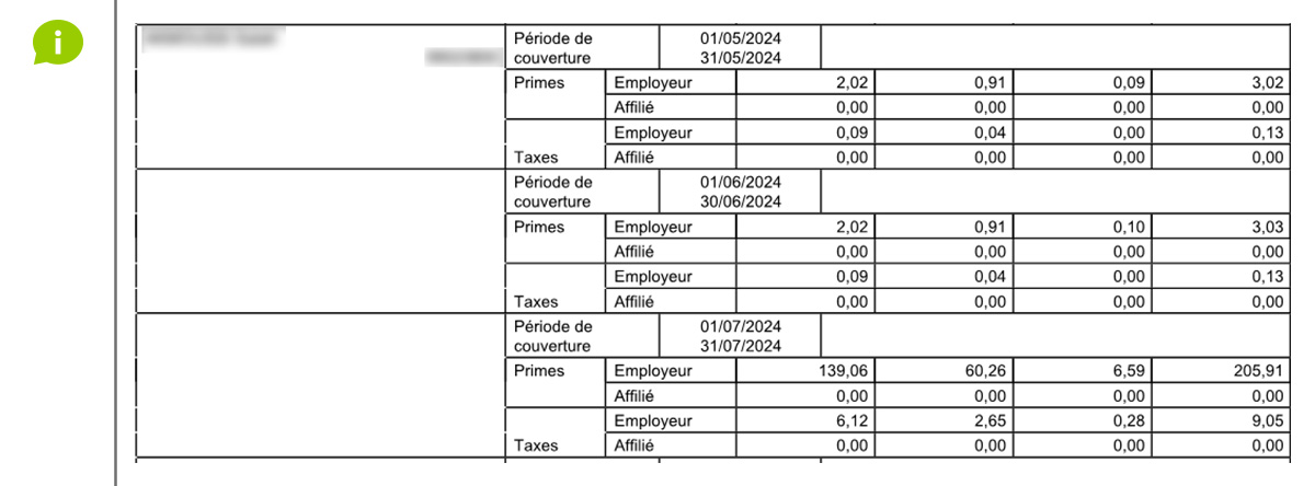 - Primes par personne avec répartition entre l'employeur et le travailleur par période