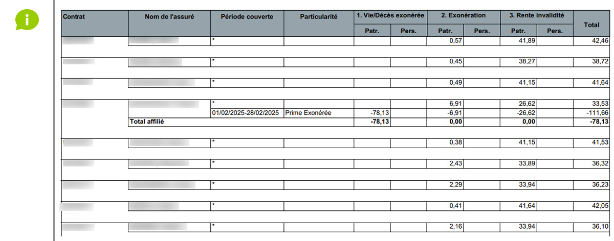 - Prime exonérée : vous pouvez voir ici quelles primes vie/décès sont exonérées et pour quelle période