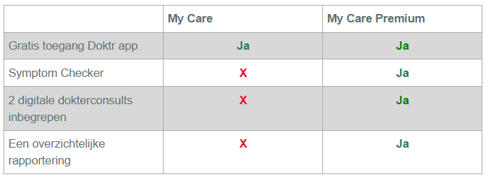 - Dankzij My Care Premium hebben uw medewerkers 24/7 toegang tot een symptom checker, een geruststelling zodra ze zich zorgen maken over een fysieke kwaal. Bovendien hebben ze elk jaar recht op twee gratis digitale consultaties bij een erkende Belgische huisarts.