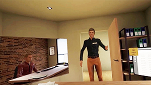 Wat het eerste betreft, ben ik gestart met de ontwikkeling van een VR-re-integratiemodule in samenspraak met professor Godderis. Het is een ervaring die mensen virtueel terug naar het werk stuurt, om ze beter voor te bereiden op de terugkeer naar het echte werk. De patiënt ervaart via de VR-headset verschillende stressoren: collega’s die een praatje komen maken, de baas die vraagt om een presentatie te geven… Deze VR-ervaring wordt gebruikt onder toezicht van zijn of haar therapeut en nadien praten ze er samen over. Een tweede stap kan zijn dat de patiënt de VR-headset mee naar huis neemt om te oefenen. We maken er dus een medische behandeling van en daarom moet de VR-therapie wetenschappelijk gevalideerd worden.