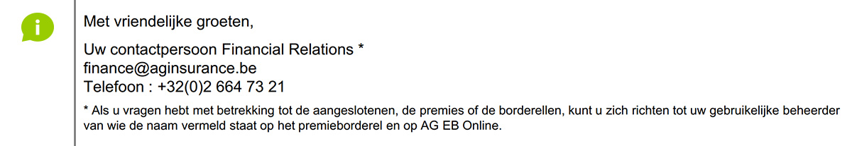 Voor vragen met betrekking tot de betalingsopdracht kan u de dienst Financial Relations contacteren.
