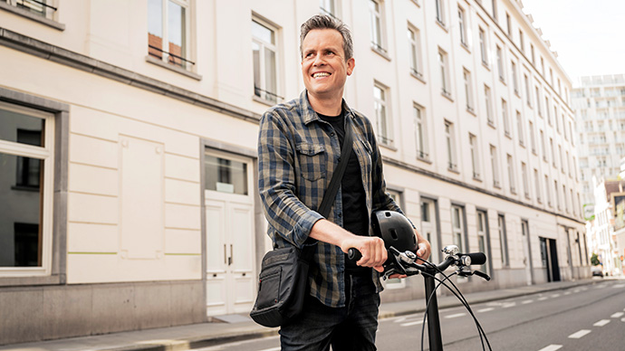 Chez AG, près de 80 % des déplacements entre le domicile et le lieu de travail sont déjà durables. Comment l'expliquer ? Jan Heyvaert : « Nos bureaux de Bruxelles, Berchem et Charleroi sont facilement accessibles, ce qui est bien entendu un atout. Mais c'est surtout AG qui vous met sur la bonne voie. Nous soutenons sans réserve tous les déplacements verts. »