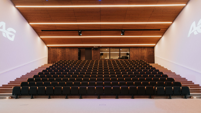 - Het auditorium heeft een capaciteit van 400 plaatsen en kan ook in tweeën worden gesplitst.