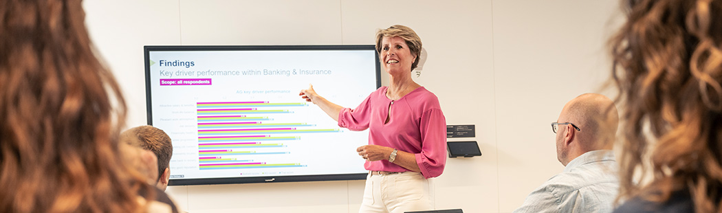 Ook intern wordt er heel wat bijgeleerd. “Jaarlijks verdiepen ongeveer 1.500 collega’s van AG zich verder in sales (soft skills, tien procent van de opleidingen) en verzekeringstechnische aspecten (hard skills, negentig procent). Bij de deelnemers zitten beginnende en meer ervaren medewerkers, tot experten toe. We diversifiëren dus ook telkens in niveau, zodat het voor iedereen voldoende nieuw, boeiend, uitdagend én verstaanbaar is.” En de starters? Ook Business Academy heeft geen afzonderlijk traject en doet zijn ding in de algemene startopleiding van AG. “Voor de meeste starters zijn verzekeringen een nieuwe wereld. In het begin komt er erg veel nieuwe informatie op je af. Maar geen zorgen, bij AG kan je blijven bijleren en het wordt allemaal snel duidelijk.”