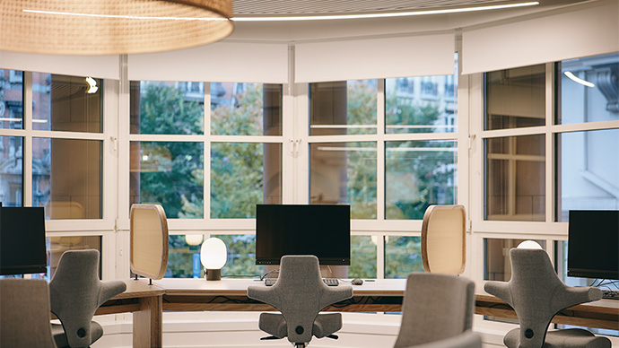 De tweede doelstelling was het comfort verbeteren. Focuszones, betere akoestiek, natuurlijk licht, aandacht voor ergonomie, hybride vergaderzalen ... Alles werd heringericht om van onze kantoren een nog betere én aangenamere werkplek te maken.