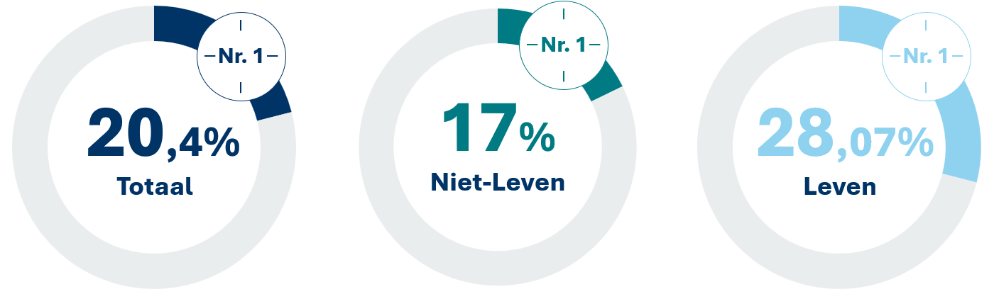 Eind 2024 had AG een totaal marktaandeel van 20,4% en was daarmee de absolute marktleider in België. De onderneming dankt haar eerste plaats aan haar sterke positie in levensverzekeringen en in de niet-levensverzekeringen.