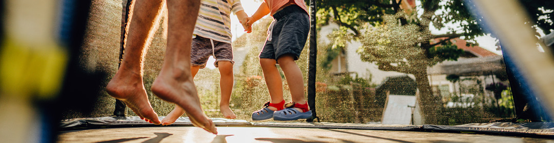 Let bij de aankoop van een trampoline op stevigheid en op de Europese Norm EN 71-14 inzake veiligheid. Een stabiele ondergrond, veiligheidsnet en regelmatige controle van de bescherming rondom de veren zijn essentieel om ongevallen te vermijden. Laat kinderen niet onder de trampoline kruipen wanneer iemand aan het springen is.