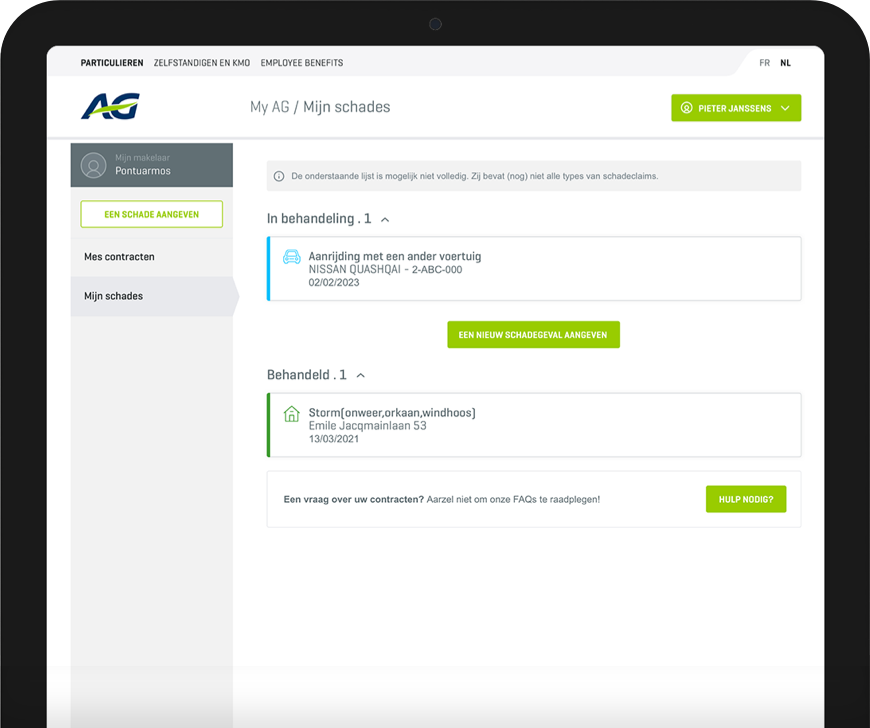 Bekijk de status van je schadegevallen in de laatste 5 jaar.