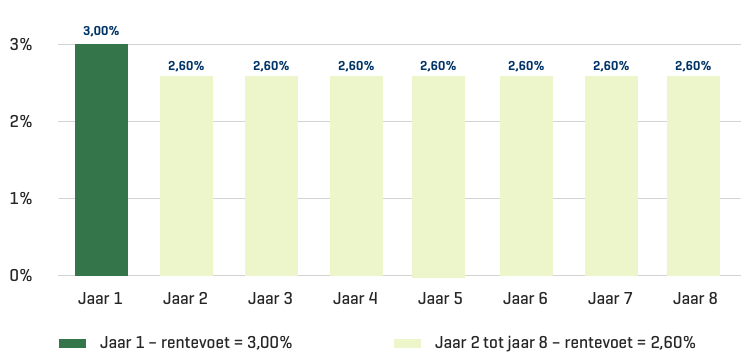 • Vaste looptijd van 8 jaar en 1 maand.