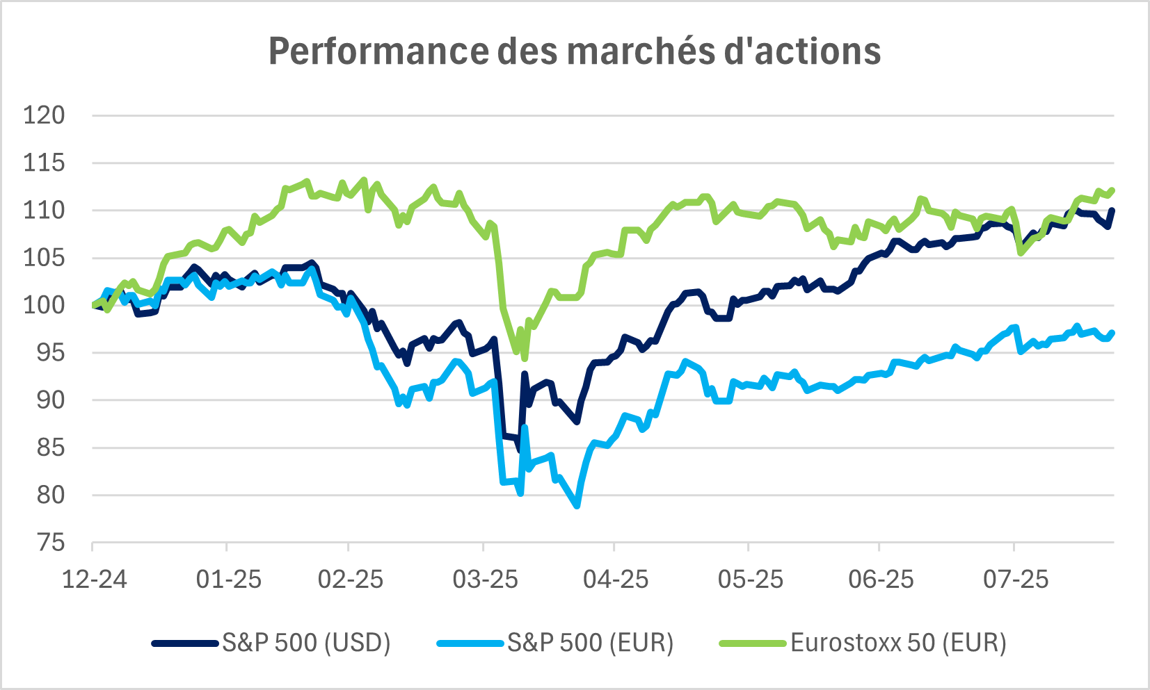 Malgré l'introduction de droits de douane, les marchés boursiers ont enregistré de très bonnes performances cette année, établissant de nouveaux records. Le marché américain a progressé de 9 % et l'Europe de 10 % (voir graphique 1). Comment expliquer ces résultats ?