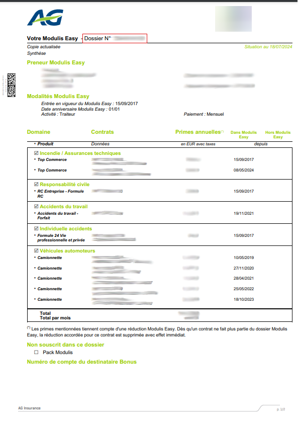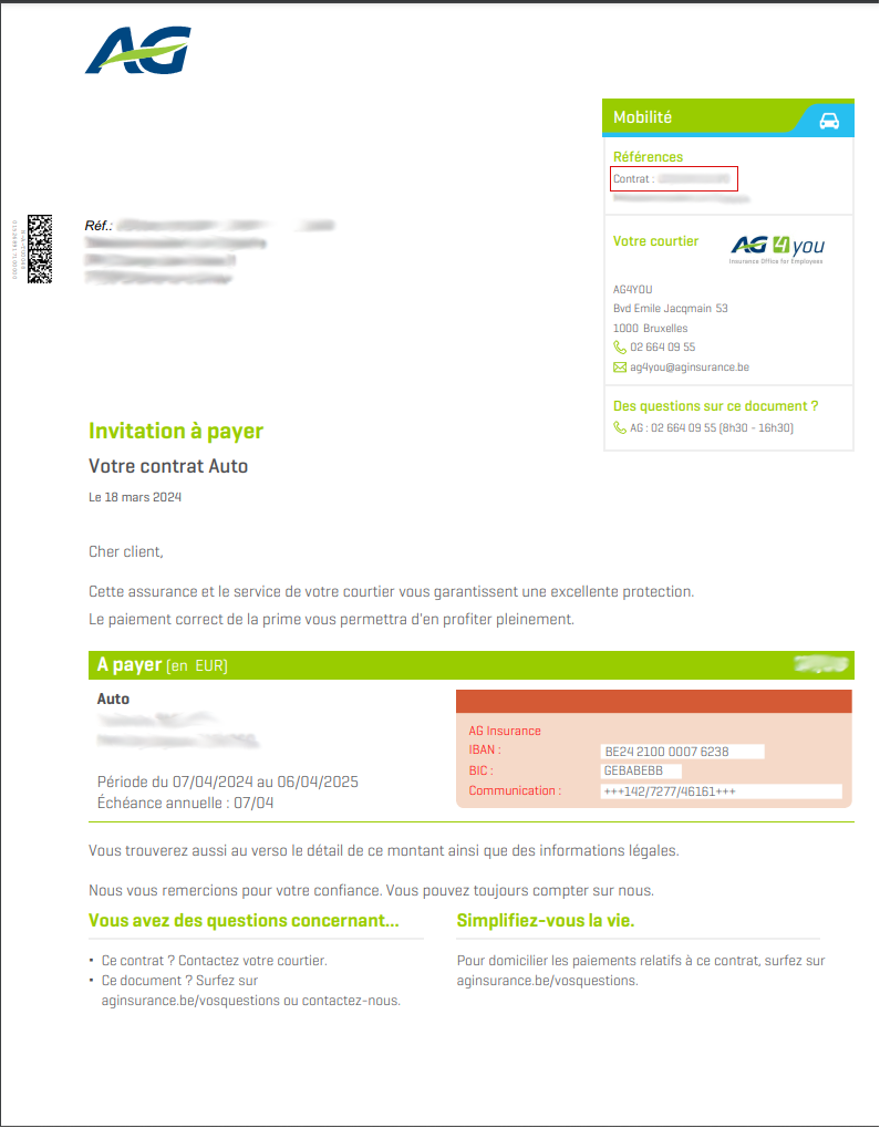 Vous pouvez trouver votre numéro de contrat ou dossier sur vos différents documents tels que vos contrats d’assurances, email, avis de paiements, etc.