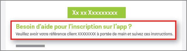 Exemple : 'Référence client' dans le cadre vert en bas de la lettre
