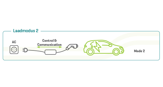 Bij de andere laadmodi 1-3, wordt wisselstroom in het voertuig zelf omgezet naar gelijkstroom.